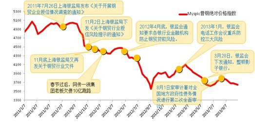 如果將近年來鋼市外部環(huán)境發(fā)生的與鋼價走勢緊密相關(guān)的重大事情,跟鋼材價格指數(shù)走勢曲線放在一起,可以得到以下圖例。很明顯,伴隨價格下跌的是宏觀面各種金融風(fēng)險防范、行業(yè)資金收緊的監(jiān)管動向。換句話說,促使價格下跌的根源,莫非是資金面的收緊?