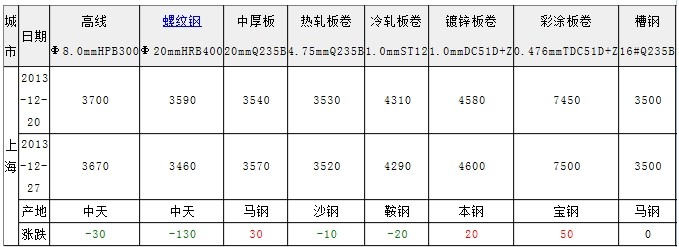 上海鋼市12月20-27日“一周評述”