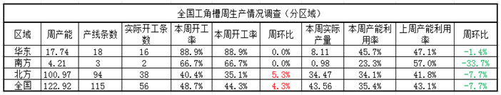 據(jù)統(tǒng)計,全國角鋼、槽鋼、工字鋼廠周生產(chǎn)調(diào)查數(shù)據(jù)新鮮出爐啦!開工率小幅增加,產(chǎn)能利用率小幅下降,全國工角槽廠內(nèi)總庫存由增轉(zhuǎn)降,具體情況如下: