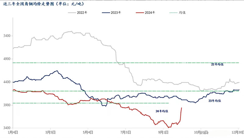 圖1:2022-2024年全國角鋼均價走勢圖(單位:元/噸)