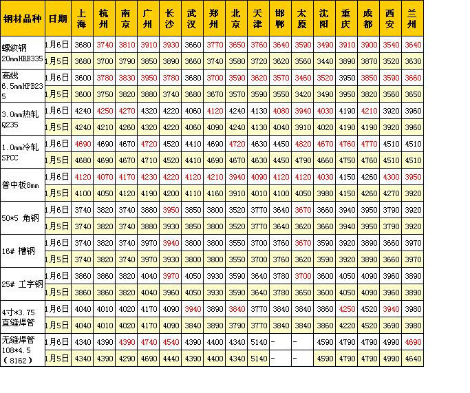 昨日1月6日,國內(nèi)鋼市漲幅總體和前兩日相比較平穩(wěn),成交量不大。具體情況6日板材方面,全國熱軋現(xiàn)貨市場漲勢大幅形勢趨向緩,上海、無錫、廣州等南部大部分地區(qū)報價基本持平,對于當(dāng)前高位運行的市場價格,鋼貿(mào)企業(yè)表示對后市謹(jǐn)慎看漲又不敢繼續(xù)追高,擔(dān)心價格上漲過快風(fēng)險也增加,整體成交量一般。全國建材市場延續(xù)上漲態(tài)勢,漲幅變小。其中以無錫、上海、廣州為首的大部分地區(qū)上漲大約在20元左右,天津、重慶、南昌等地報價持平。5日沙鋼漲幅最大,對鋼市漲價信心有一定助推作用。但是因為鋼市難有實質(zhì)需求作為支撐,漲幅或?qū)②呄蛉酢?/FONT>
