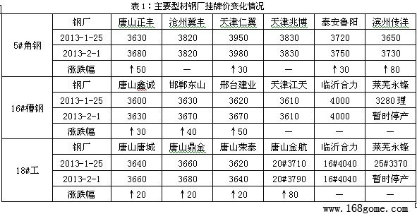 1月28日至2月1日角鋼,槽鋼等型材周評