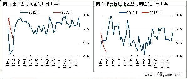 本周國內(nèi)型材鋼廠開工率加速下降,停產(chǎn)檢修廠家過半。截止到1月29日,唐山20家型材調(diào)坯軋材企業(yè)74條生產(chǎn)線開工33條,較上周減少12條,開工率為44.59%,較上周降17.07%。