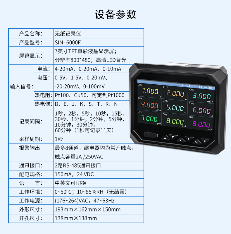 產(chǎn)品名稱:聯(lián)測_SIN-R6000F_新款無紙記錄儀
