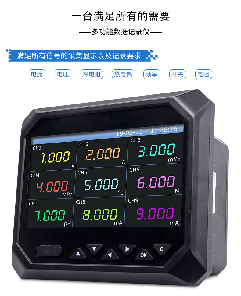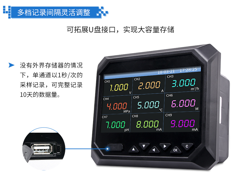 無紙記錄儀是將采集的數(shù)據(jù)/運算數(shù)據(jù)以時間為基軸記錄在儀器內(nèi)部的存儲系統(tǒng)中,無消耗任何常用的記錄設(shè)施,如:紙張、筆墨。記錄在儀器內(nèi)部的存儲數(shù)據(jù),通過運算、模擬后顯示在液晶屏。常用顯示用液晶屏比較廣泛。在液晶屏屏幕上,可以顯示數(shù)字顯示、棒圖顯示、曲線顯示、報警列表等。無紙記錄儀采集的數(shù)據(jù),常用的有:溫度、壓力、流量、液位、電壓、電流、濕度、頻率、振動、轉(zhuǎn)速等。