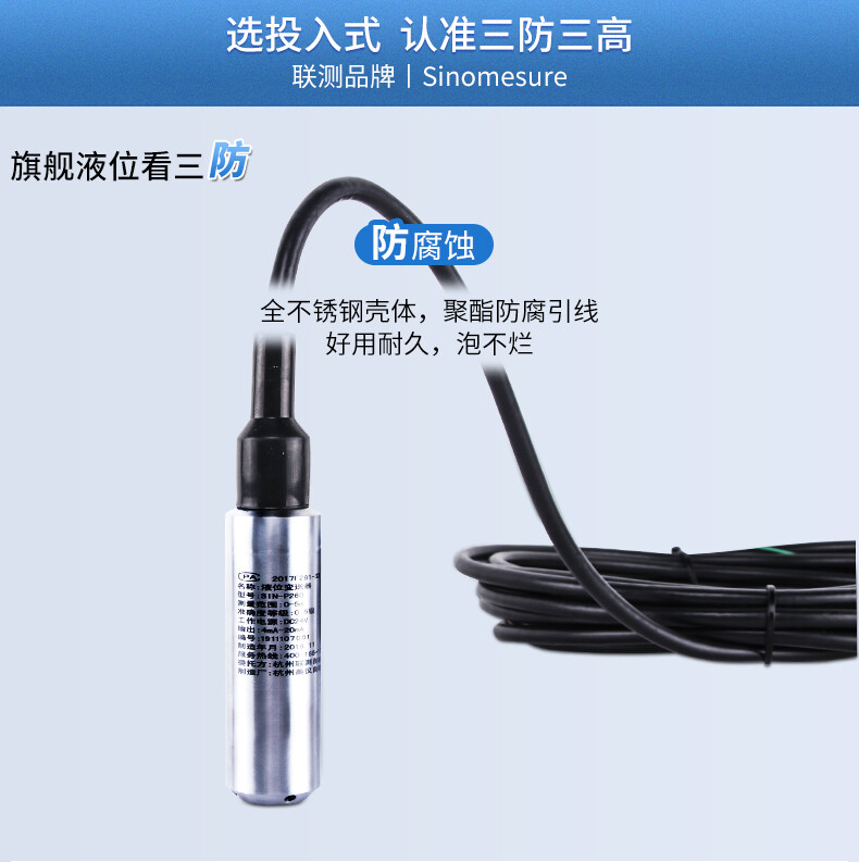 SIN-P260/P2600投入式液位變送器由高性能擴散硅壓阻式壓力傳感器作為測量元件,把與液位深度成正比的液體靜壓力準確測量出來,并經(jīng)過信號調(diào)理電路轉換成標準(電流或電壓)信號輸出,建立起輸出信號與液體深度的線性對應關系,實現(xiàn)對液體深度的測量。